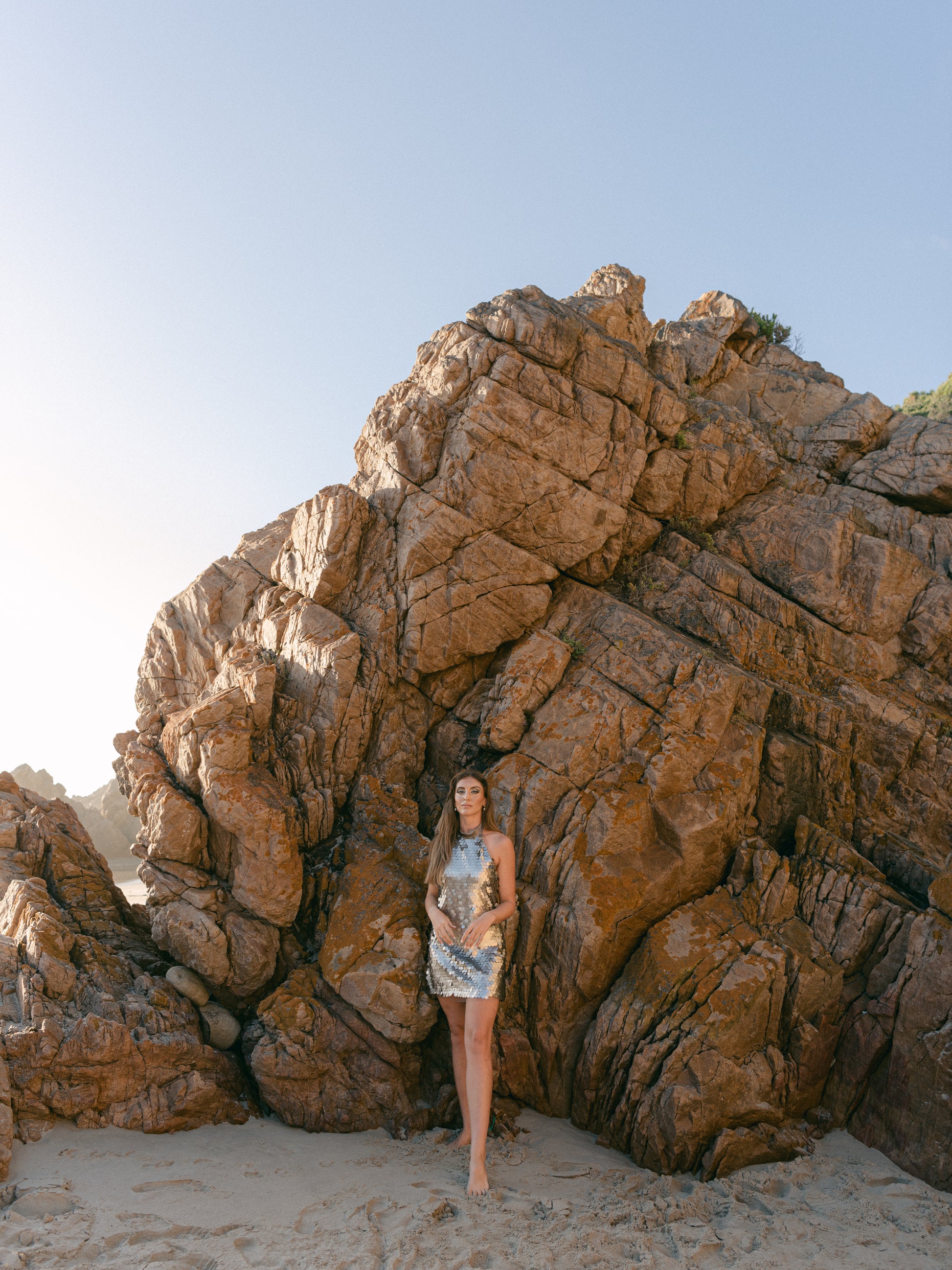 Aurelia is pure liquid gold—drenched in champagne-hued sequins, she radiates opulence and modern allure. This halter neck mini dress is designed for the bride who sparkles with confidence, with oversized sequins that shimmer with every step. A delicate tulle trim adds a whisper of romance, balancing the bold glamour with soft elegance. Made for golden-hour ceremonies and unforgettable after-parties, Aurelia is a celebration of light, luxury, and unapologetic beauty.