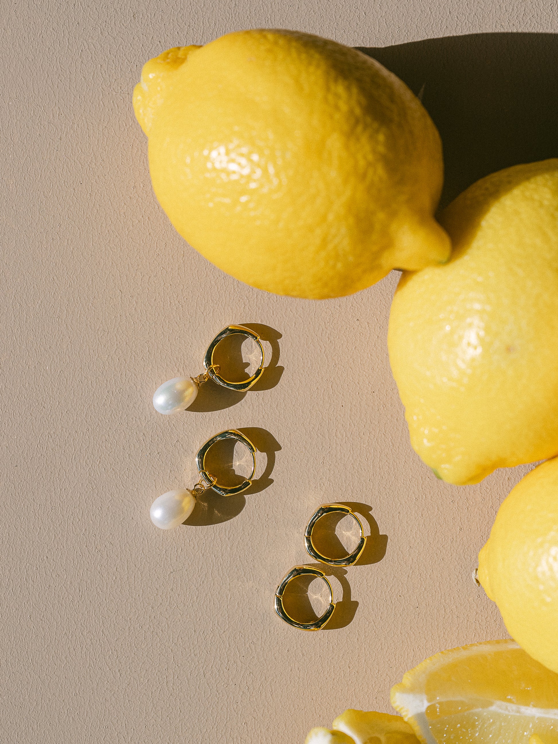 These gold-plated round hoops are beautifully accented with a removable drop pearl, allowing you to customize your look effortlessly - choose to wear them with the pearl for a graceful, sophisticated statement or without for a sleek, minimalist style.