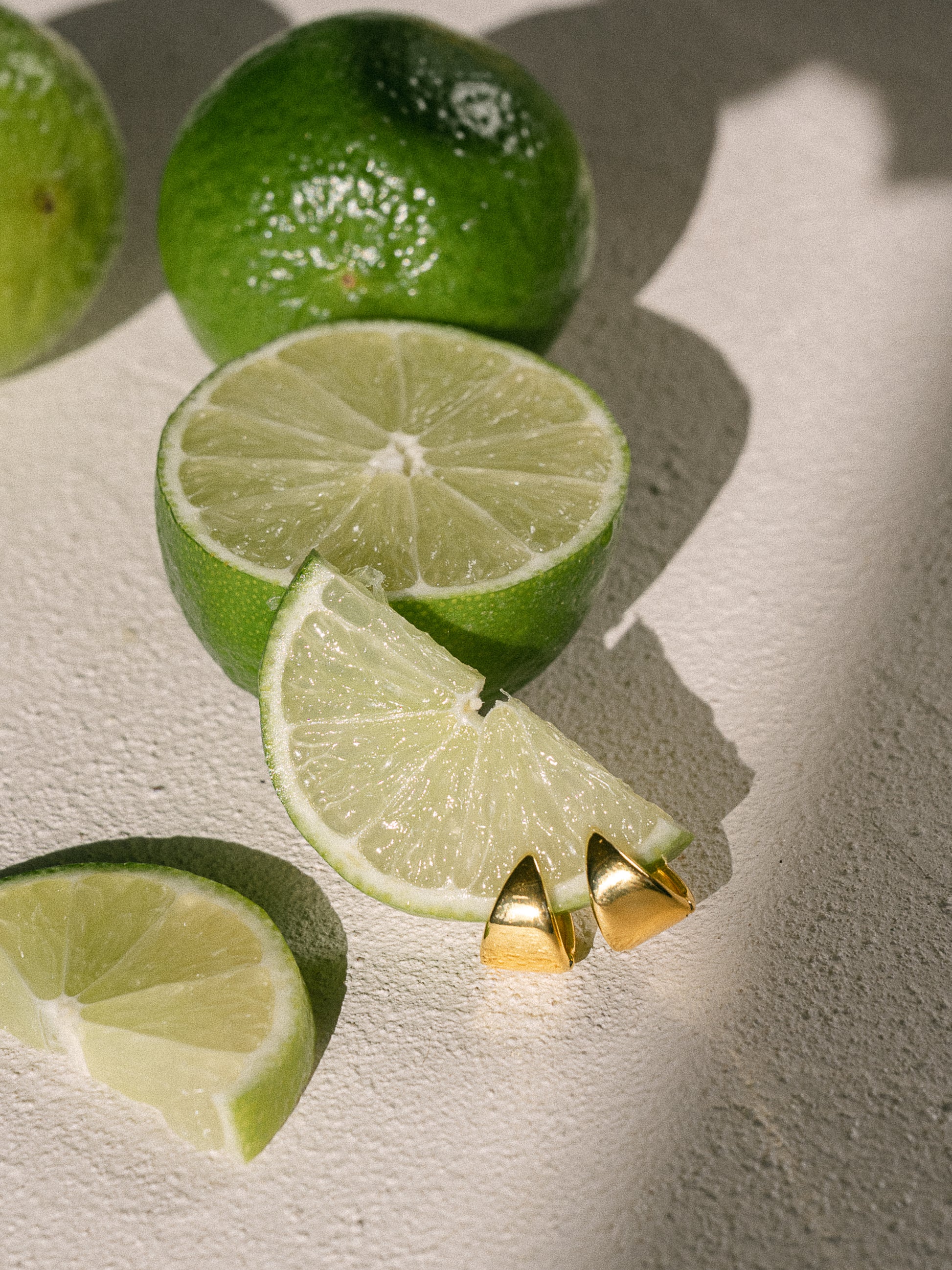- Gold plated brass with a hypoallergenic sterling silver stud.