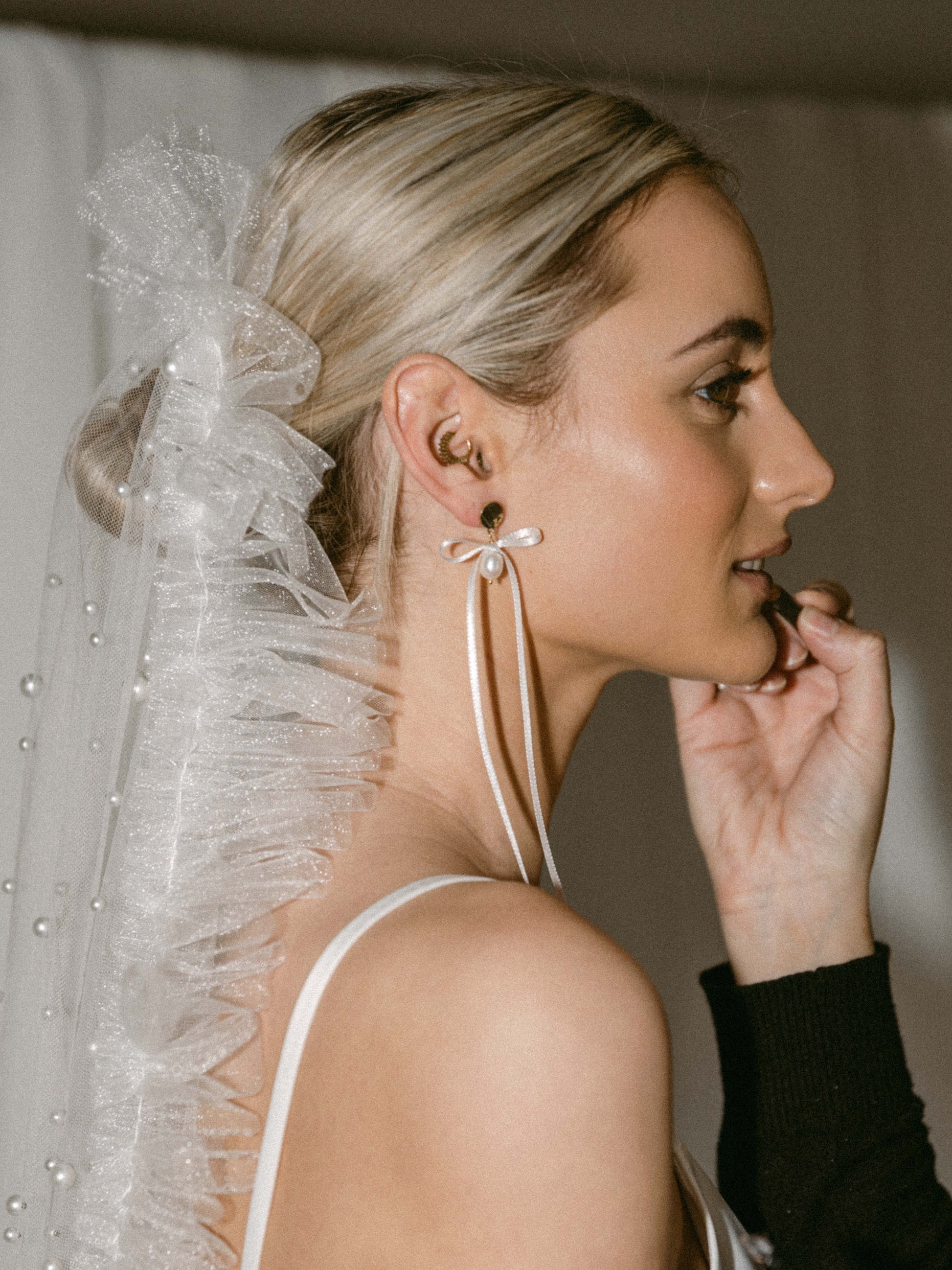 - Pearl embellished tulle
