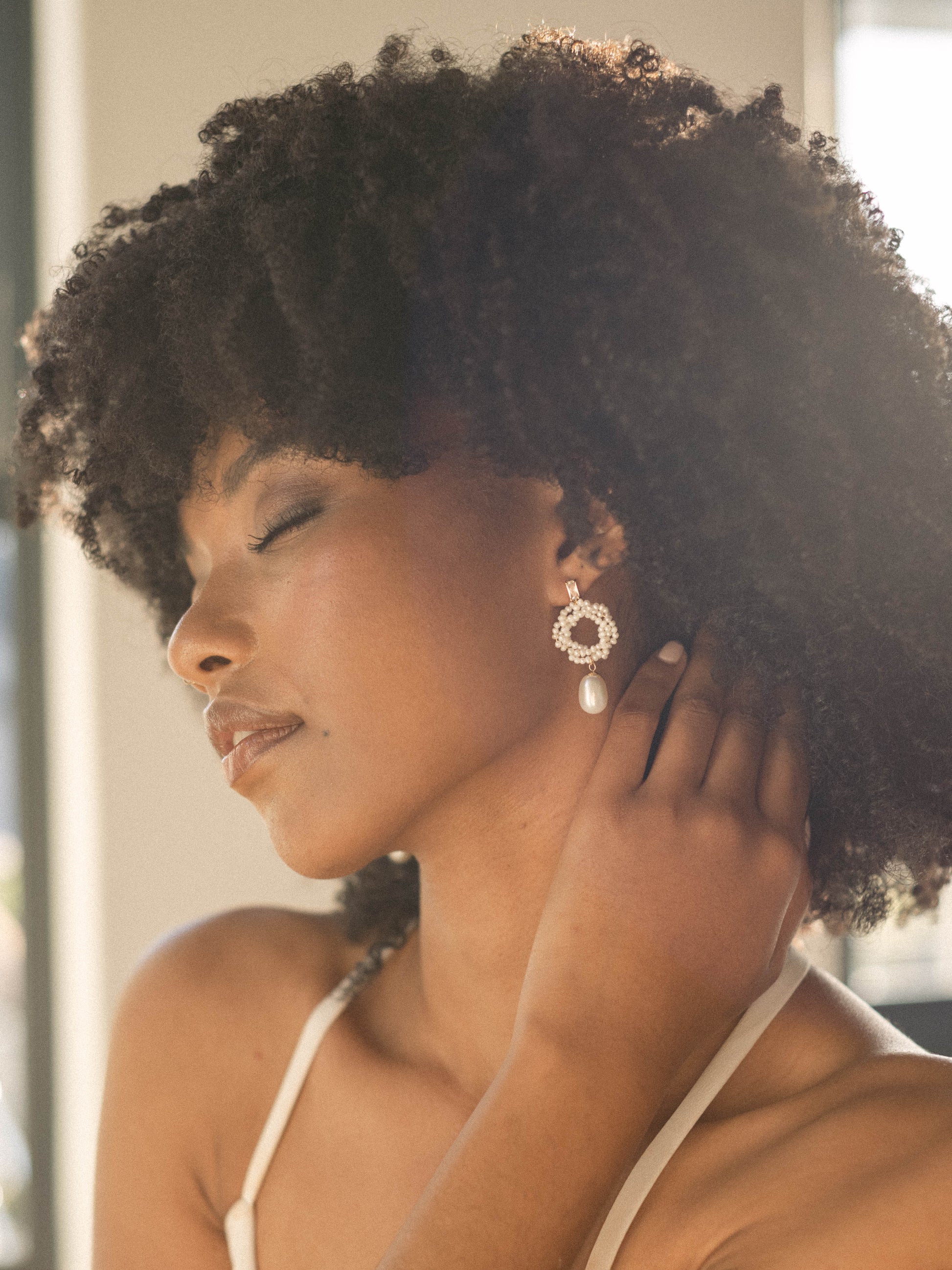 Seraphine radiates heavenly elegance with her delicate seed pearl wreath, shimmering cubic zirconia accents, and graceful pearl drops. This ethereal design embodies timeless beauty and refined sophistication, perfect for the modern bride who seeks to add a touch of celestial charm to her wedding day. Seraphine’s intricate details and luminous pearls create a captivating balance of subtlety and brilliance.