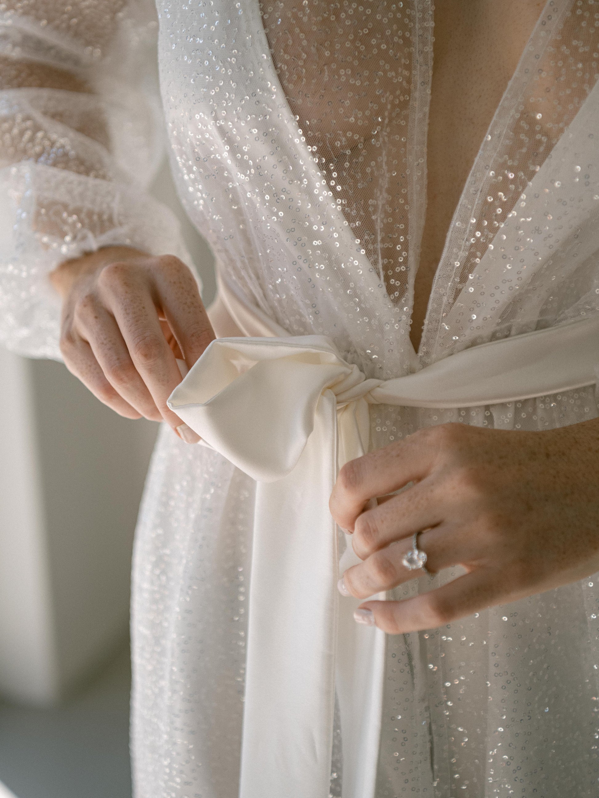 Note: Due to the texture of the sequins, this robe may not be suitable for sensory-sensitive brides.